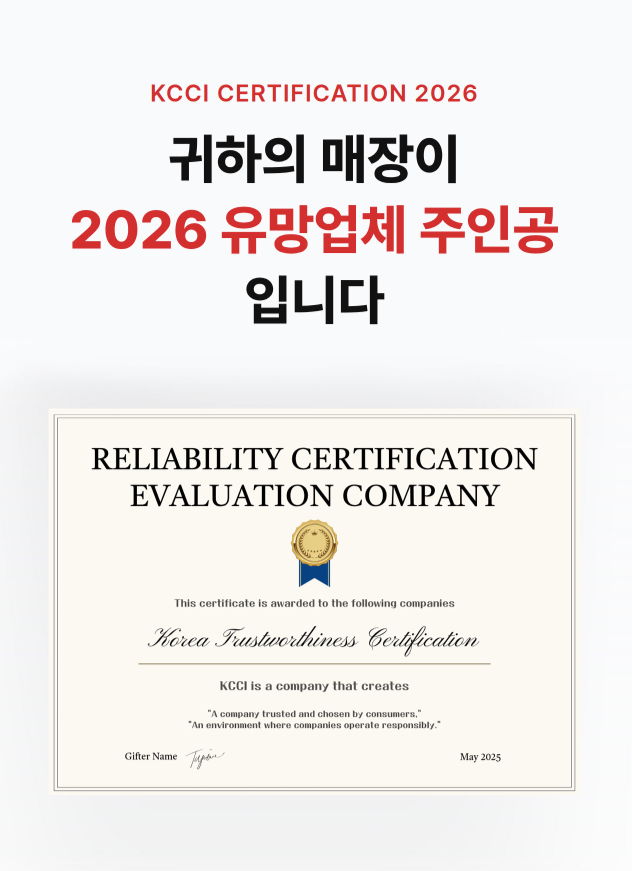 KCCI 한국신뢰도인증 | 협력 : 비즈플레이스 | 대표전화 : 070-8983-8740 | 이메일 : info@kcci.kr
