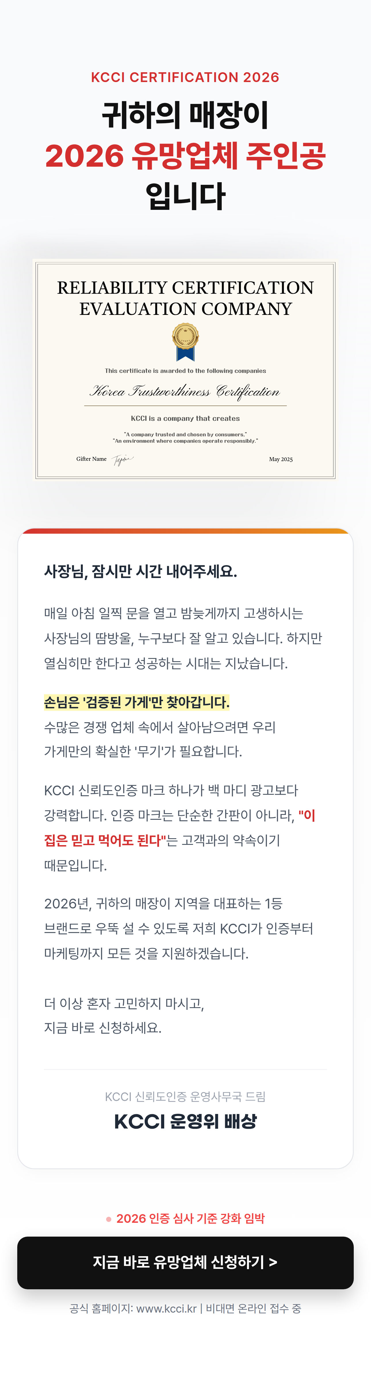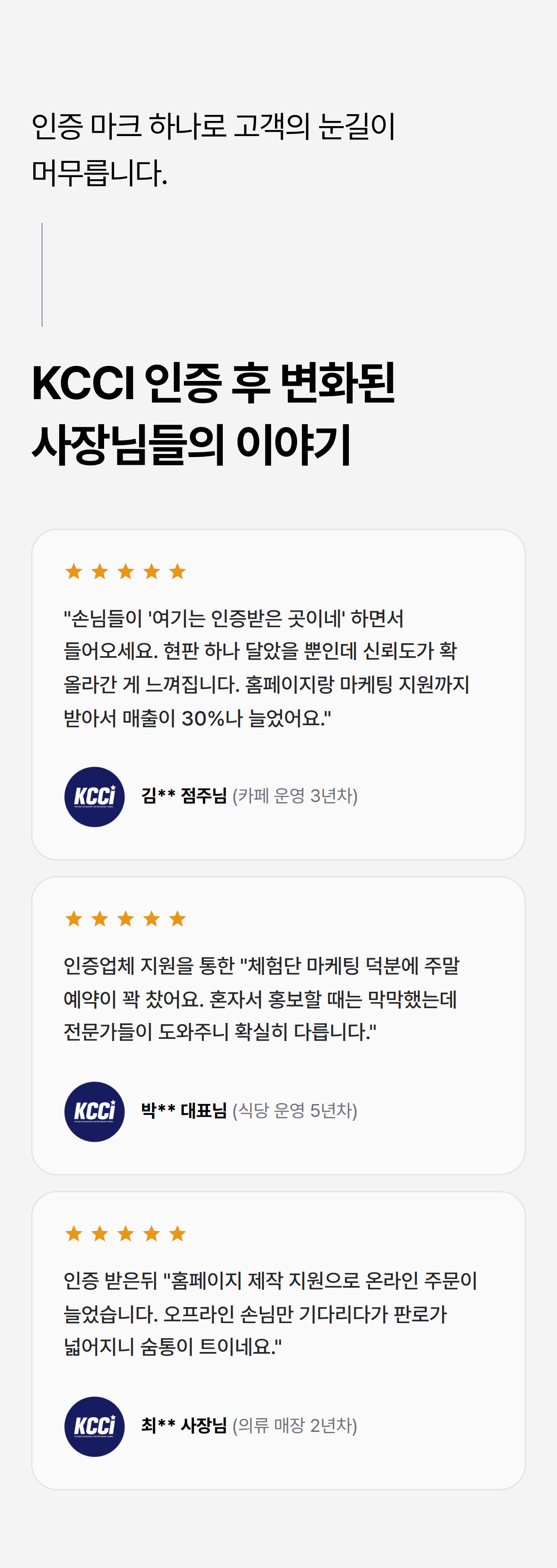 KCCI 한국신뢰도인증 | 협력 : 비즈플레이스 | 대표전화 : 070-8983-8740 | 이메일 : info@kcci.kr